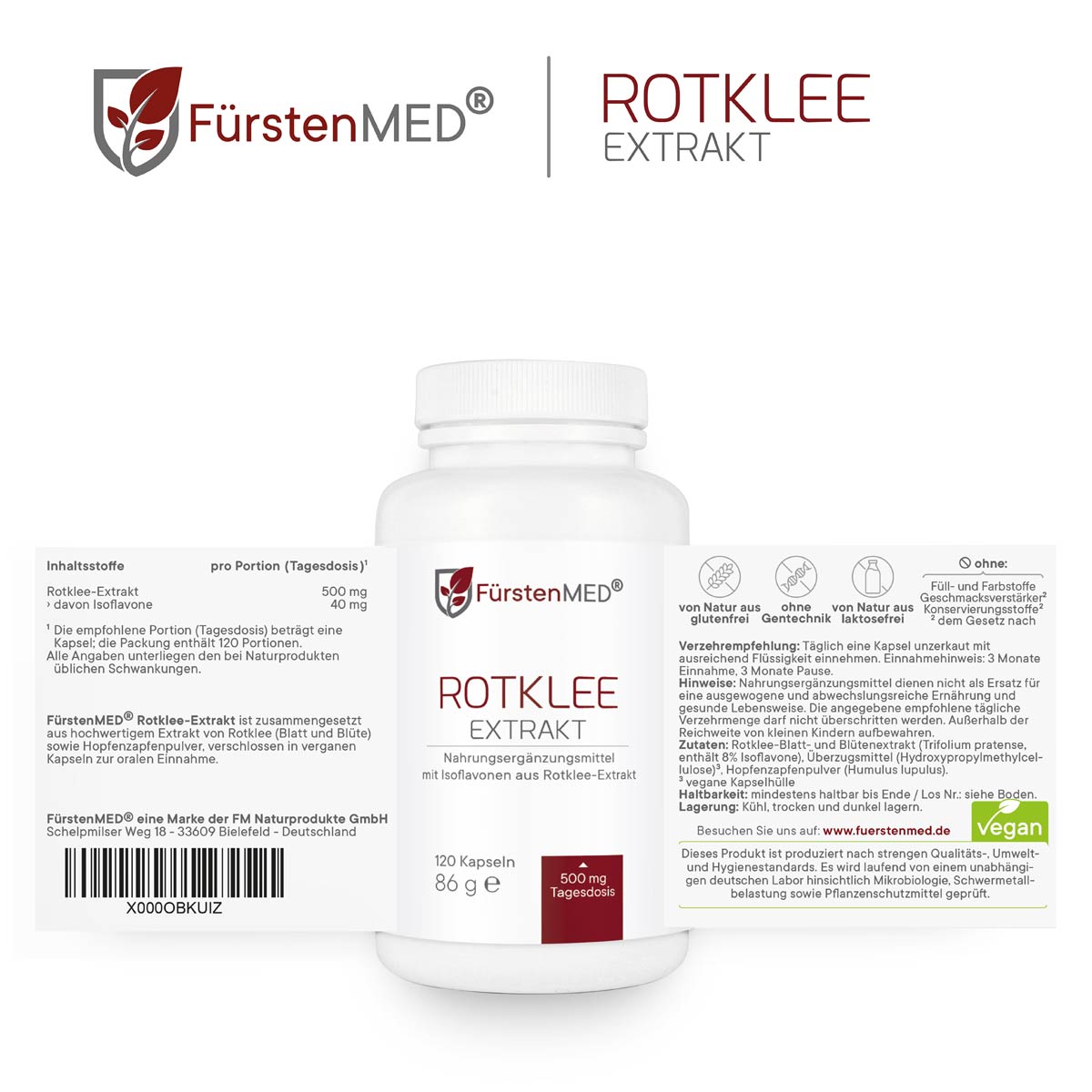 Zutaten: Rotklee-Blatt-und Blütenextrakt (Trifolium pratense, enthält 8% Isoflavon), Überzugsmittel: Hydroxypropylmethylcellulose (vegane Kapselhülle), Hopfenzapfenpulver (Humulus lupulus). Ohne unerwünschte Zusatzstoffe produziert und abgefüllt in Deutschland.