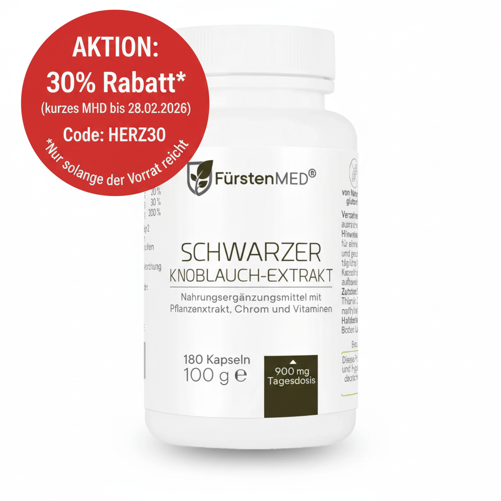 FürstenMED Schwarzer Knoblauch + Chrom + Vitamine 180 Kapseln kurzes MHD (28.02.2026) - 30% Rabatt mit dem Code: HERZ30 zum Warenkorb hinzufügen